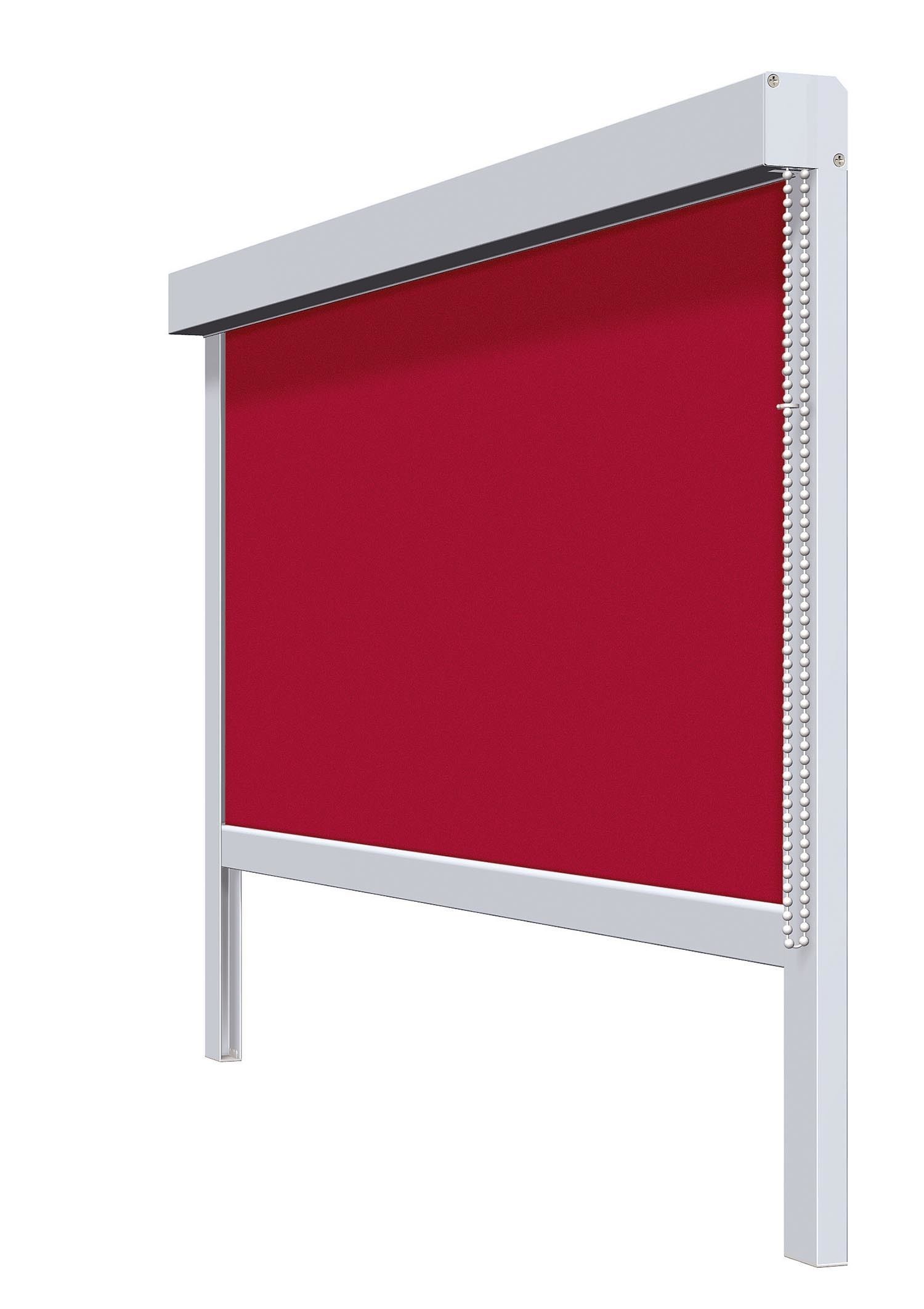 - Optionale seitliche Führung des Behanges durch Seil oder Führungsschienen verhindert Behangbewegungen