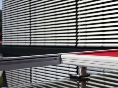 - Senkrecht absenkbares Volant-Rollo im Ausfallprofil